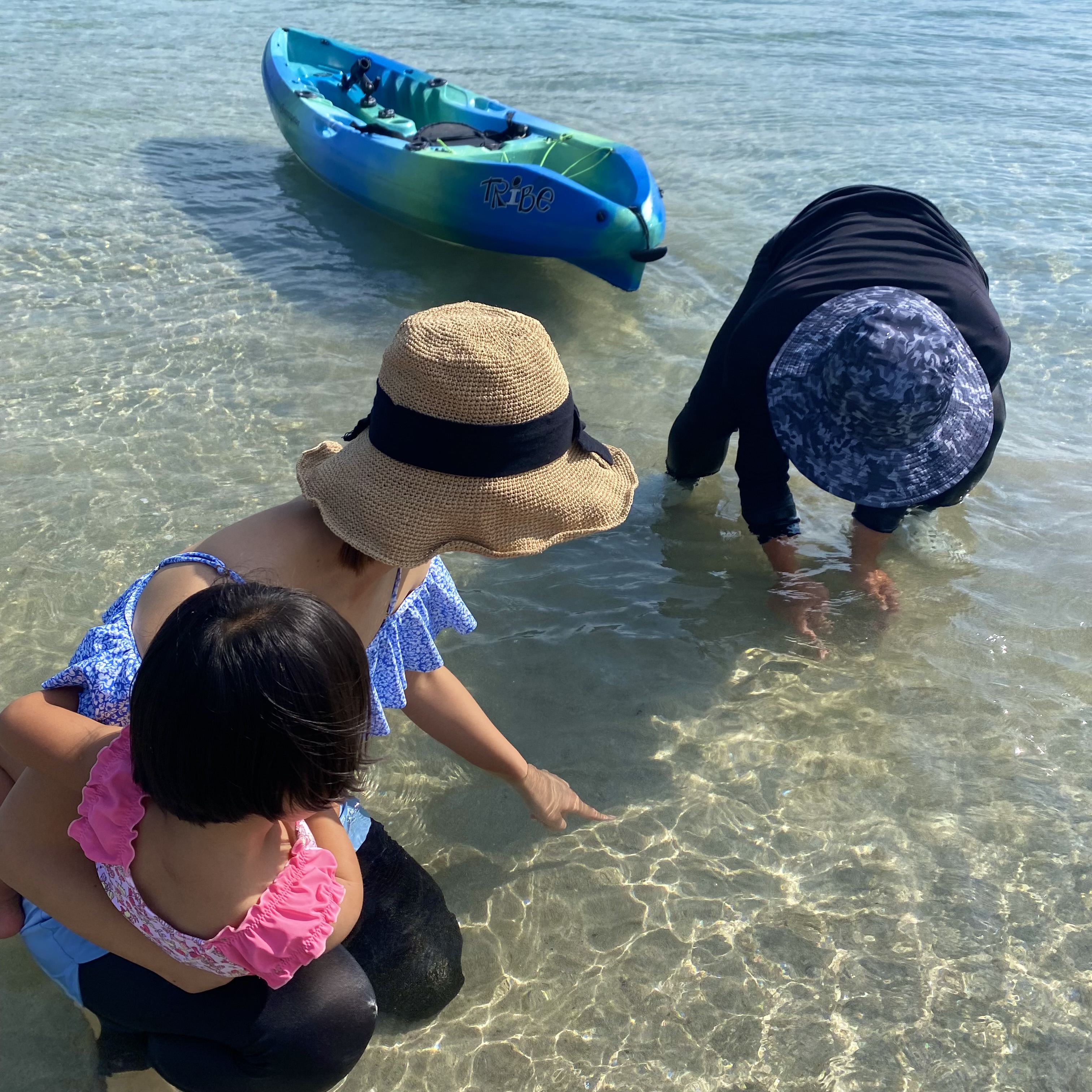 カヌーや手掴みで姪っ子たちと魚獲りゲーム。
