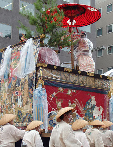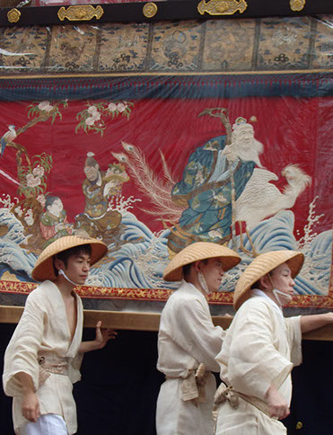 ところが明治時代、引敷を知らない人が間違って背中に据え付けられたらしく、近年までそのままになってしまっていました。保昌山保存会では、江戸時代の絵にのっとって、布の位置を変えるかどうか、大いに悩んだ末、本来の姿に戻して巡行しています。