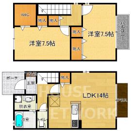 | 間取詳細 | 洋室7.5×洋室7.5×LDK14 |