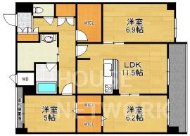 | 間取詳細 | 洋室6.9×洋室6.2×洋室5×LDK11.5 |