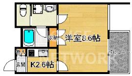 | 間取詳細 | 洋室8.6×K2.6 |