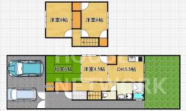下鴨4DKの一戸建て。駐車場2台完備ですよ。